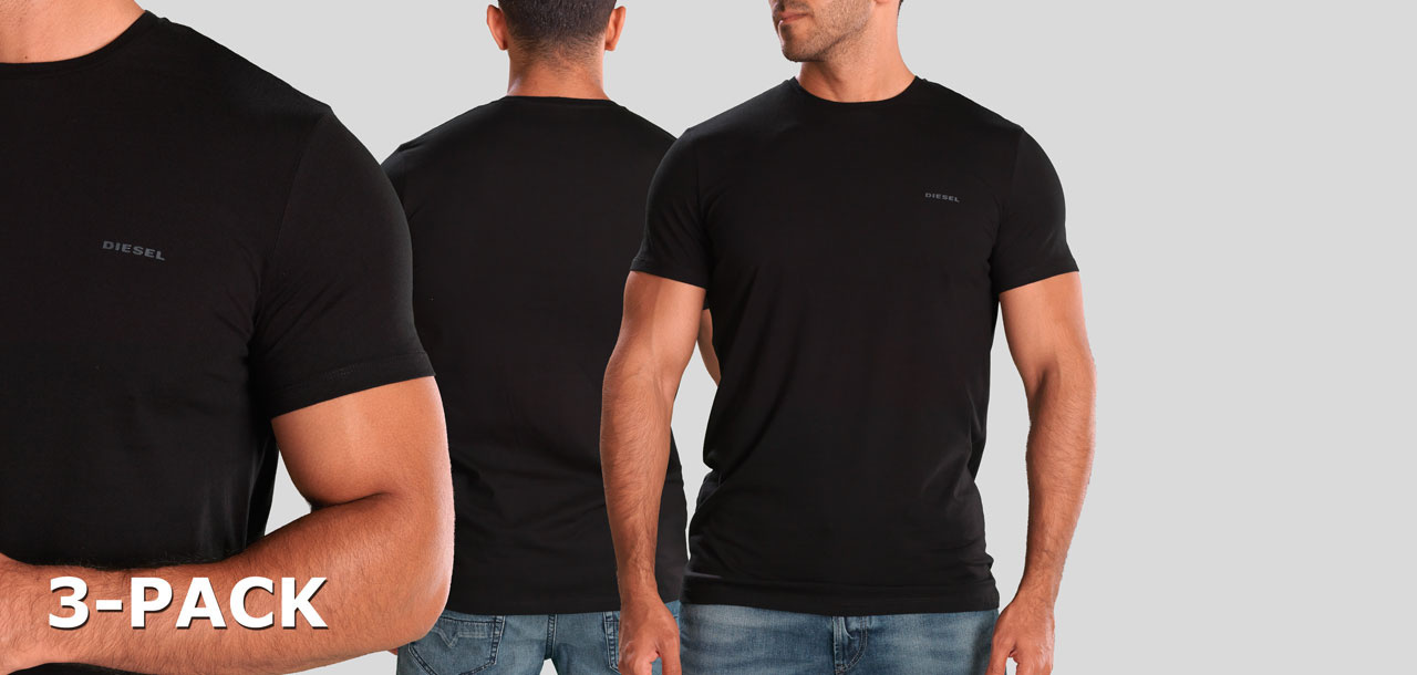 Diesel Jake Round Neck T-Shirt 3-Pack AALW Schwarz