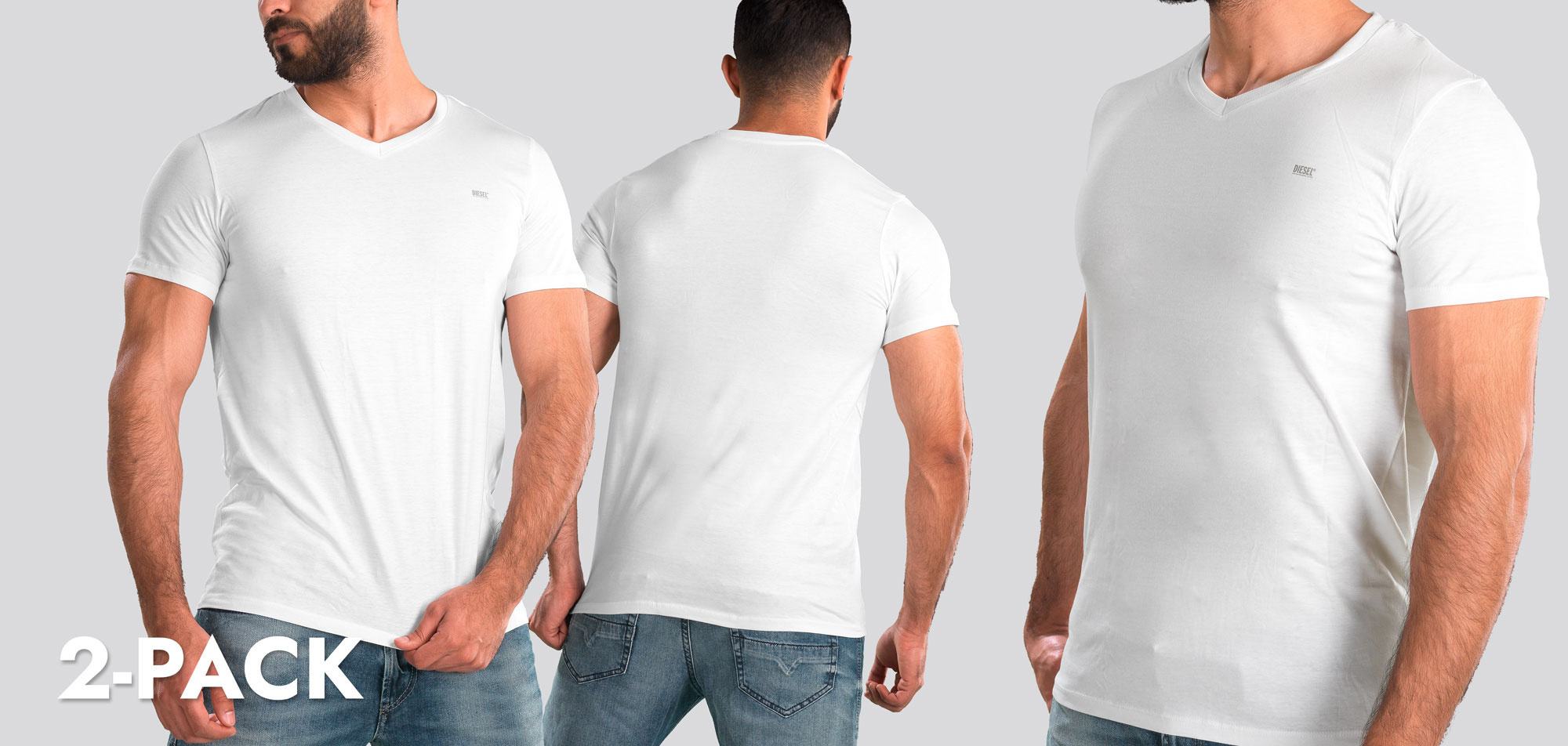 Diesel Michael V-Neck T-Shirt 2-Pack LDAS Weiß
